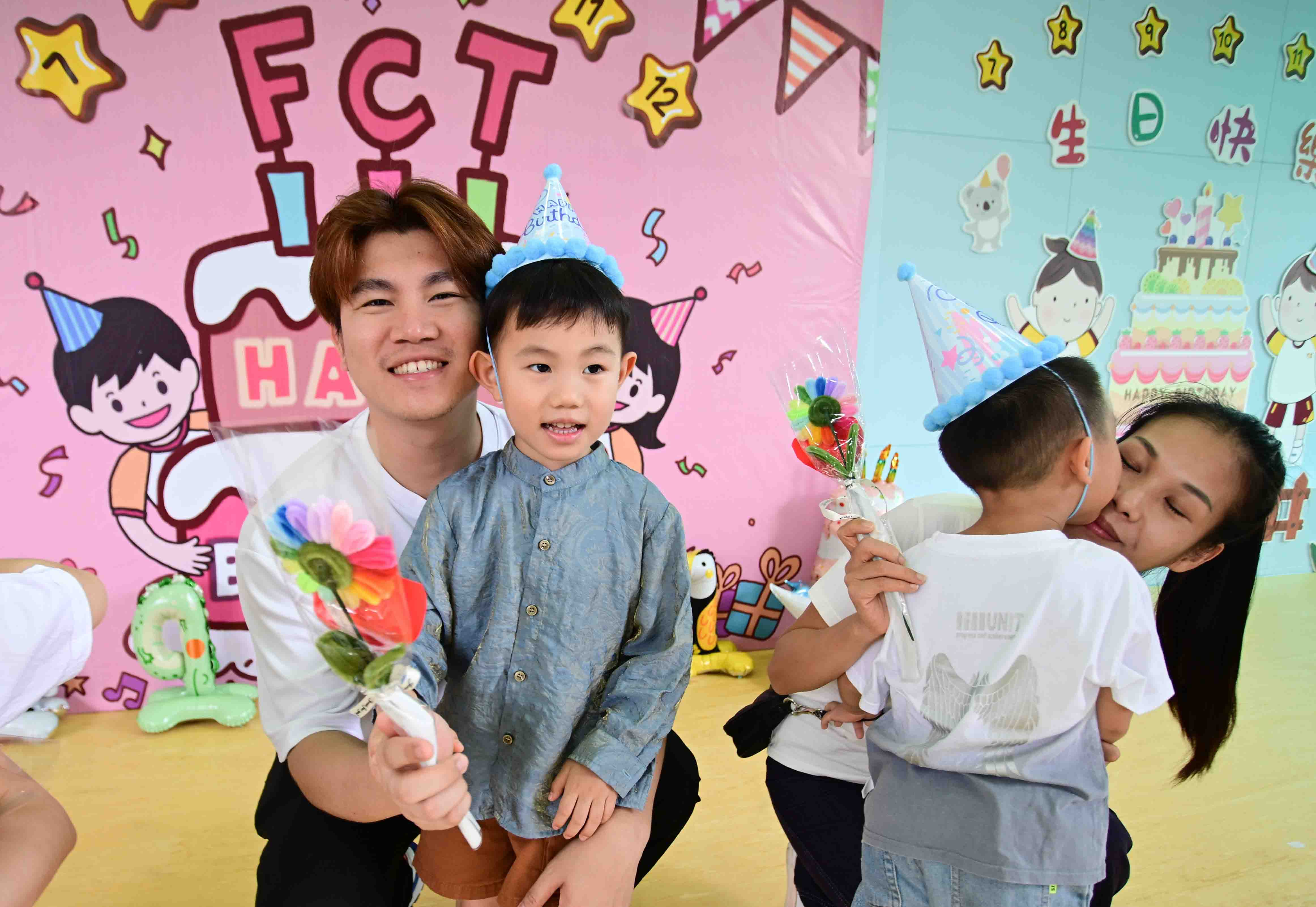 小壽星們在歌聲中進場,將彩虹花獻給父母並表達愛意,溫馨場面令人動容。