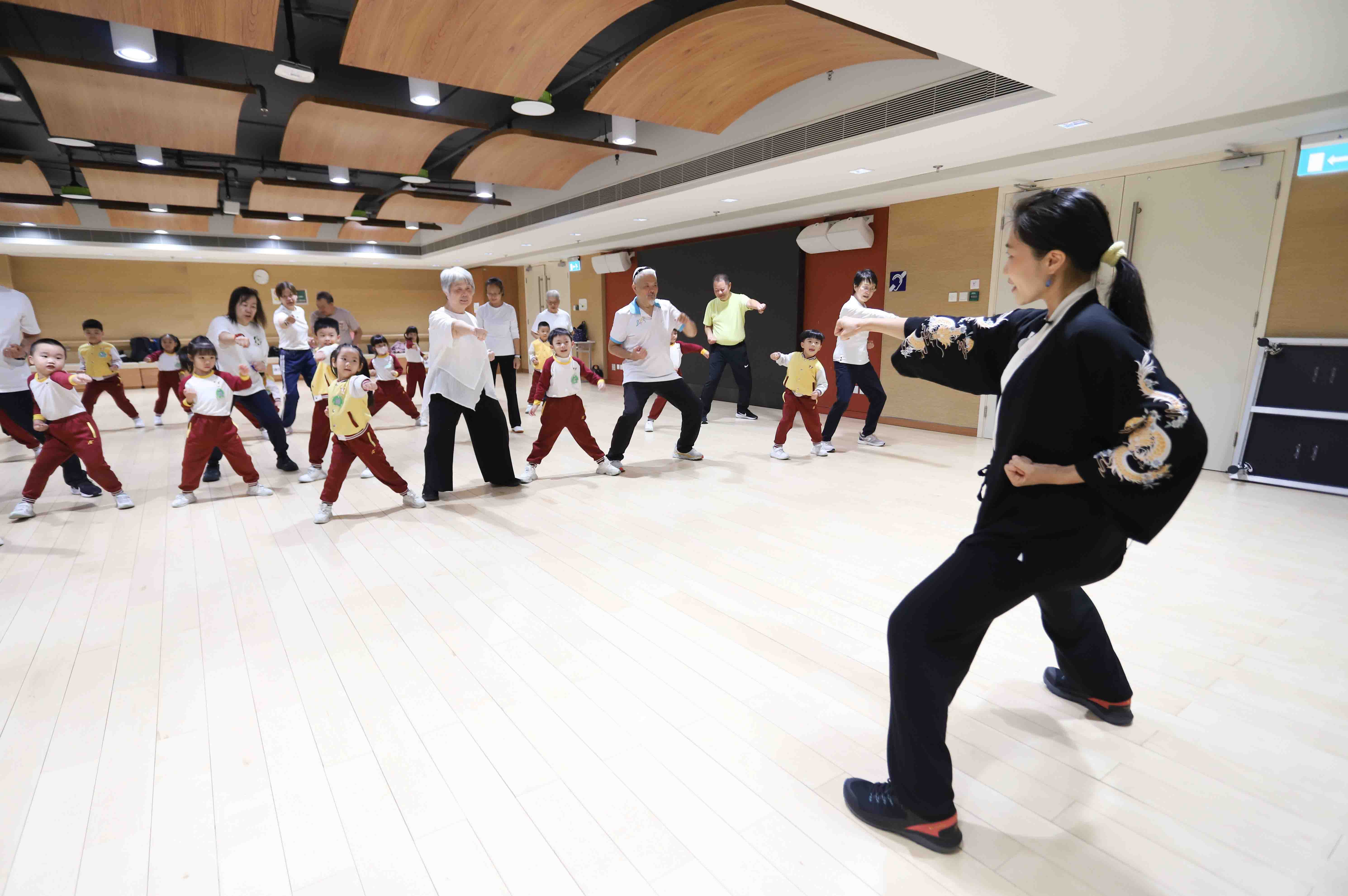 在導師及長者學員的耐心指導下,幼兒學習了「金雞抖翎」、「金雞獨立」和「左右直拳」等太極基本動作。一招一式充滿專注與認真,幼兒們都努力學習做出最標準的動作。導師們的親切笑容與鼓勵,讓幼兒感受到滿滿的溫暖。