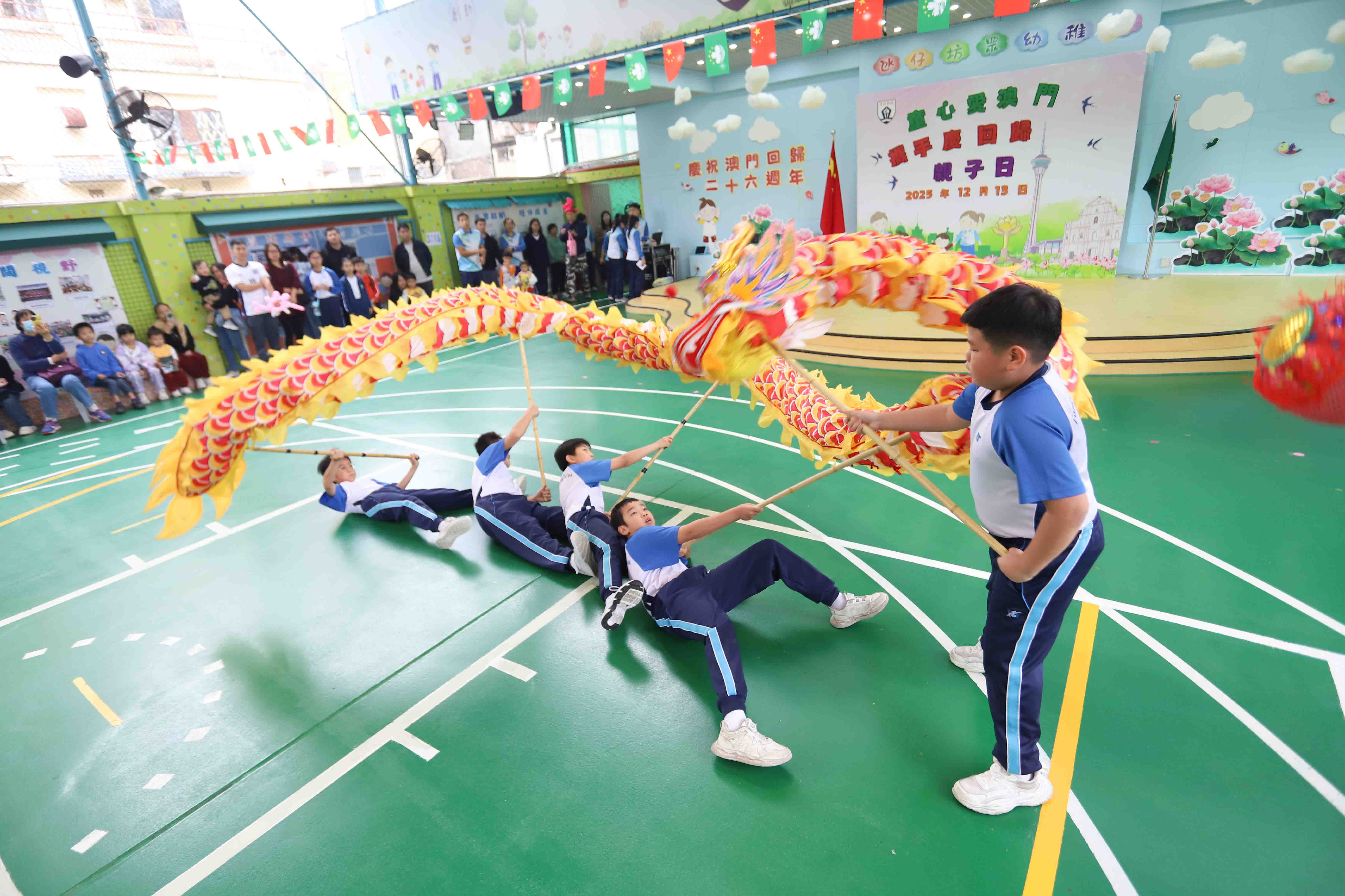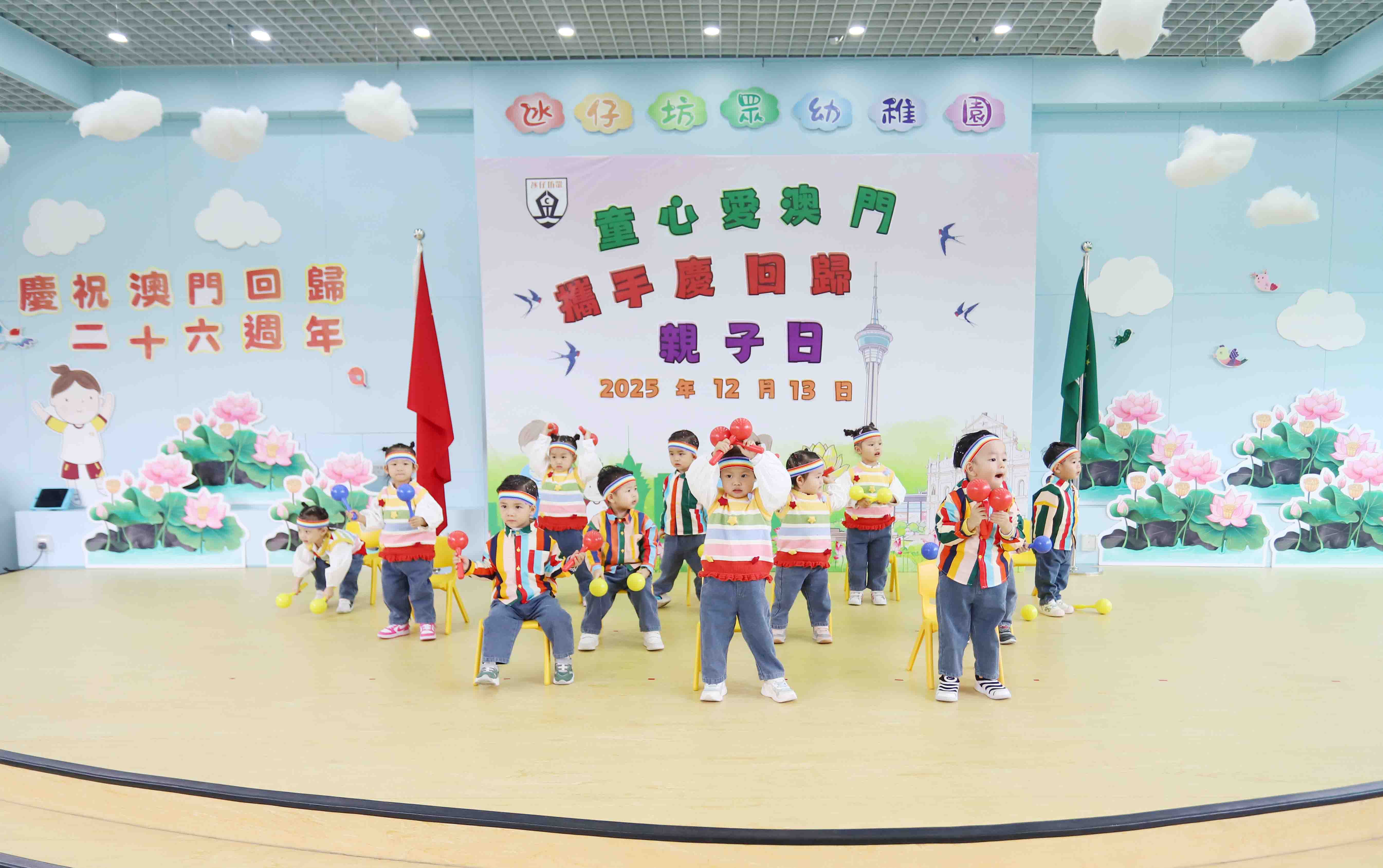 為了慶祝澳門回歸祖國二十六周年,氹仔坊眾學校幼稚園部在12月13日舉辦了「童心愛澳門・攜手慶回歸」親子開放日。當天,大朋友小朋友一起走進校園,笑聲滿滿,熱鬧又溫馨。