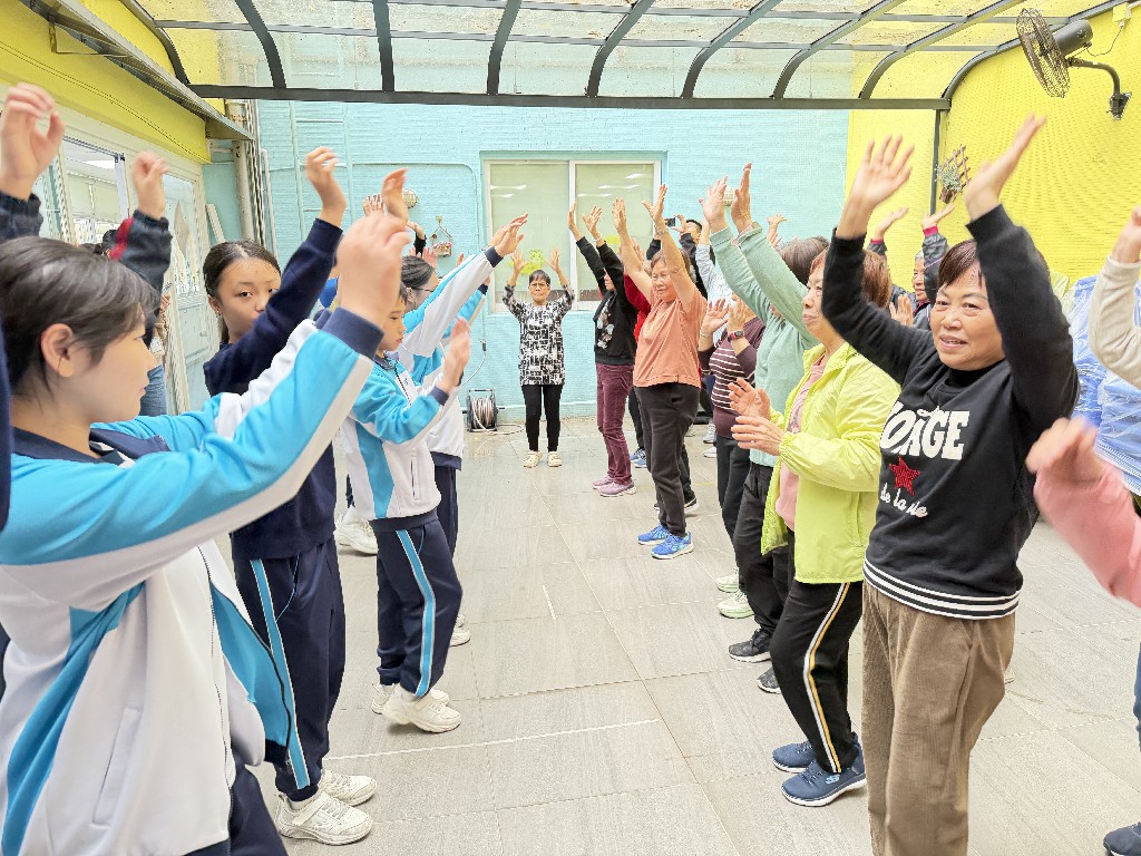 活動伊始,老友記與小義工一同進行「鬆一鬆操」,舒展身心。隨後,大家攜手製作新年掛飾,並齊聲合唱《歡樂年年》,場面歡欣。小義工更將剪紙班同學用心製作的作品送贈長者,「福」字寓意福氣臨門。最後,長者亦親筆為義工寫上春節揮春,為這次暖意洋溢的跨代共聚畫上圓滿句號。