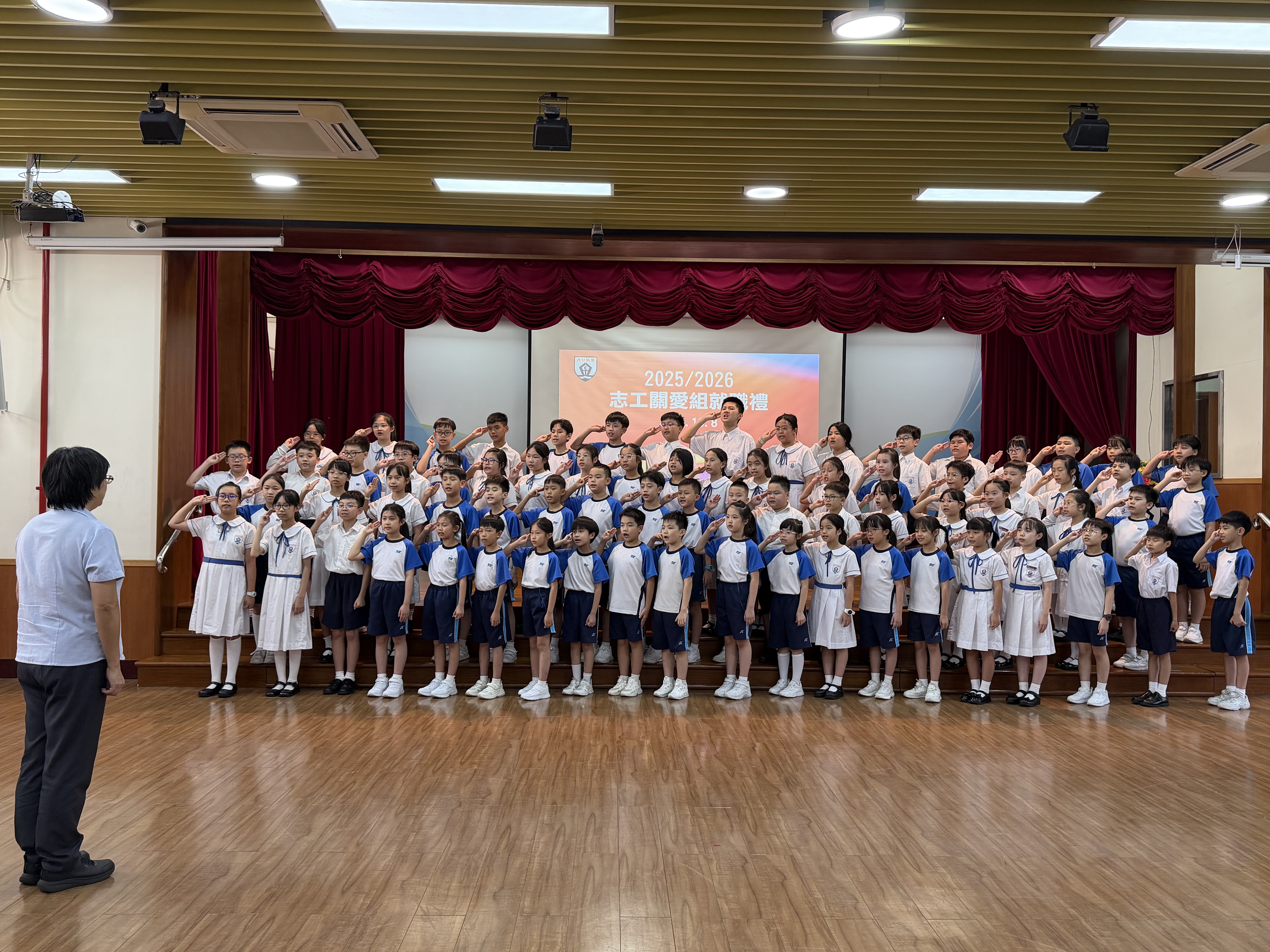「志工關愛組」主要由「風紀小組」與「義工小組」整合而成,旨在結合兩組優勢,強化校園關懷與服務效能。宣誓儀式中,各隊長依次獲授袖章,象徵正式成為志工關愛組的成員。未來,他們將以身作則,主動關懷同學,樹立良好榜樣,共同營造溫馨友善的校園氛圍。