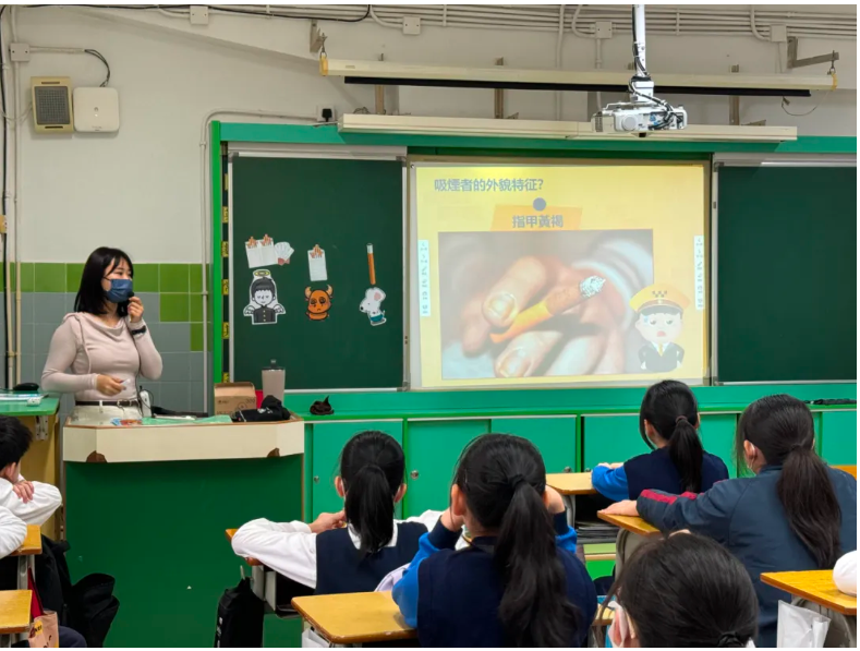 結合課題《拒絕誘惑》,常識科邀請無煙澳門健康生活協會走進課堂,為六年級學生舉辦「無煙無酒校園工作坊」,介紹了電子煙的危害。工作坊以「案件搜索」的形式,引領學生深入調查新興煙草製品——電子煙,了解其成分及對健康的危害;同時,活動還揭露煙草商的誤導性行銷手段,幫助學生逐步認清電子煙對身體的負面影響及其潛在的危害,從而提升防範意識。