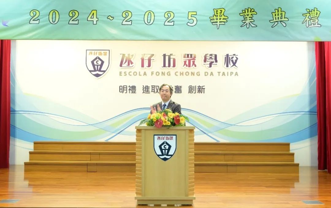典禮伊始,何偉倫副校長對畢業生表示殷切期望,希望同學要持續精進學業、發揮個人潛能;同時要常懷感恩之心,多參與社區活動,為社會貢獻自己的力量。鄧偉強廳長則寄語畢業生在人工智慧時代要無懼未知與失敗,懷揣敢於嘗試的精神,勇於挑戰舒適區,提高自身各方面能力,努力成為多元化的人才,把夢想轉化為現實。